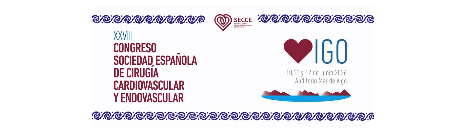 10 junio - 12 junio XXVIII Congreso de la Sociedad Española de Cirugía Cardiovascular y Endovascular. SECCE 2026 Auditorio Mar de Vigo Av. da Beiramar, 59, Vigo, Pontevedra