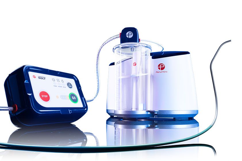 El sistema Indigo Lightning Bolt de Penumbra es un dispositivo de trombectomía mecánica por aspiración computerizada (CAVT), diseñado para eliminar trombos en la vasculatura periférica arterial y venosa de forma rápida, segura y eficaz, restaurando el flujo sanguíneo. Integra un software avanzado con algoritmos duales de detección de trombos basados en presión y flujo. Su tecnología Bolt utiliza aspiración modulada en la punta del catéter, combinando la aspiración inteligente Lightning con un algoritmo de microprocesador. Esto permite la eliminación de trombos con mínima pérdida de sangre. El sistema utiliza la bomba ENGINE, que proporciona un vacío continuo de hasta –29 inHg, y se emplea junto con un tubo de aspiración estéril (incluido en el kit) y el contenedor IAPS3 (no estéril), para la recolección del material trombótico.